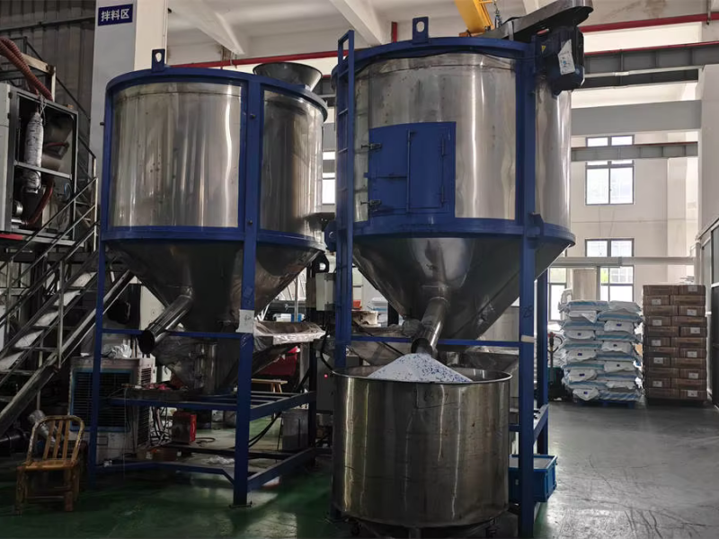 • Gravimetric material mixer (masterbatch/additives): Precise dosing keeps color, IV, and melt viscosity consistent.